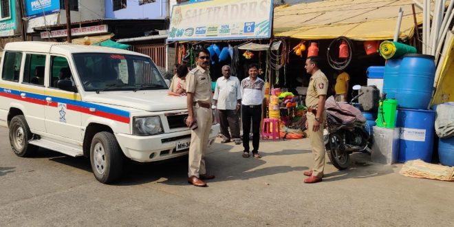 चिमूर :- चिमूर पोलिस स्टेशनचे पोलिस निरीक्षक मनोज गभने यानी रहदारीस अडथला निर्माण करणाऱ्या दुकानदारास वारंवार सूचना देऊनही चिमूर शहरारती दुकानदारानी दुर्लक्ष केल्यामुळे आज 19 अतिक्रमण धारकावर कार्यवाही करण्यात आली.चिमूर शहरातुन निघत असलेल्या चिमूर-वरोरा-चंद्रपुर हाइवे वर वाहतुकीची खुप मोठी समस्या निर्माण झाली होती, चिमूर पोलिस स्टेशनला मनोज गजभे रुजू होताच सर्व प्रथम वाहतुकीकड़े लक्ष्य केंद्रित केले, रूट मार्च च्या माध्यमातून जनजागृती केली पन दिलेल्या सूचनाकडे वाहन चालक व दुकानदार विक्रेत्यानी दुर्लक्ष केल्याने आज दिनांक 9 दिसम्बर रोजी पोलिस स्टेशन चिमूर तर्फे चिमूर शहरात विशेष मोहिम राबऊन सार्वजनिक रस्त्यावर जीवितास धोका होईल,