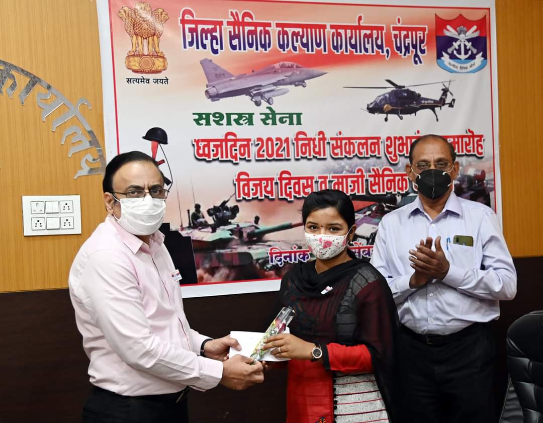 सशस्त्र सेना ध्वजदिन निधी संकलन व विजय दिवस हा विशेष असा दिवस आहे, असे सांगून जिल्हाधिकारी श्री. गुल्हाने म्हणाले, सैनिकांच्या बलिदानाची भरपाई कोणत्याही परिस्थितीत शक्य नाही. मात्र सैनिकांच्या कुटुंबियांप्रती कृतज्ञतेचा भाग म्हणून त्यांच्या अडीअडचणी सोडविण्याचा हा एक प्रयत्न आहे. चंद्रपूर जिल्ह्यातील माजी सैनिक किंवा शहिदांच्या कुटुंबियांचे काही प्रश्न असल्यास त्यांनी प्रशासनाला याबाबत अवगत करावे. प्रशासनाकडून प्राधान्याने ते प्रश्न सोडविले जातील, असे जिल्हाधिका-यांनी उपस्थितांना आश्वस्त केले.