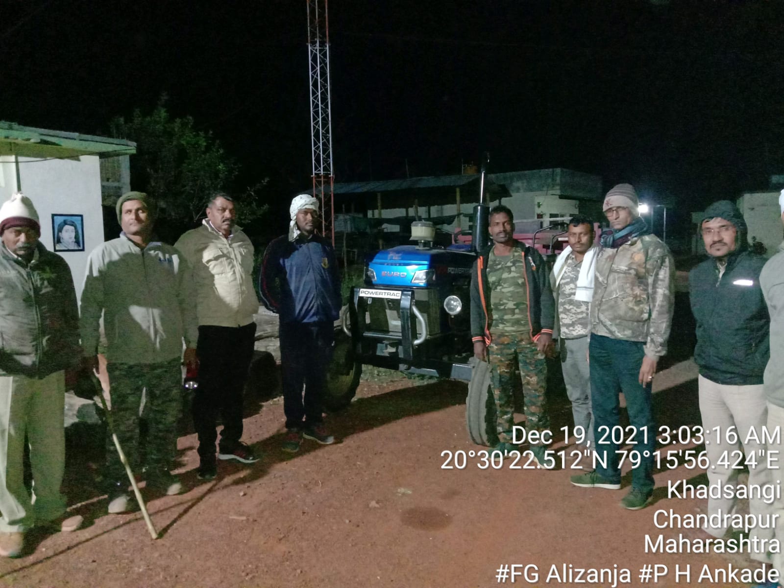 पी. एच. आनकार्ड नियत वनरक्षक, अलिझजा, एस. एस. टापरे, वनरक्षक तळोधी एस. एस. मेश्राम, वनरक्षक, खडसंगी- जी. एम. हिंगणकर, वनरक्षक, खडसंगी – हे सामुहिक गस्त करीत असतांना अवैध्य रेती उत्खनन करणारे पॉवर ट्रॅक्टर रंग निळा Euyo 50 (नोंदणी क्रमांक नसलेले) व ट्रॉली क्र. MH 34 BF 86 55 रंग लाल आढळून आले.