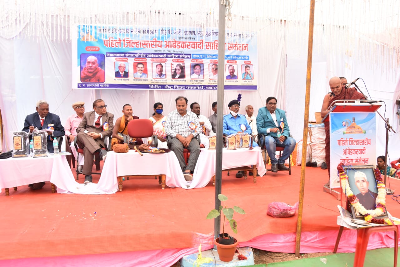 पहीले जिल्हास्तरीय आंबेडकरवादी साहित्य संमेलनाचे उद्धघाटन पु.भ. ज्ञानज्योती महाथेरो यांनी केले. कार्यक्रमाचे संमेलाध्यक्ष साहित्यीक व कवी माणिक खोबरागडे, कार्यक्रमाचे स्वागताध्यक्ष घनश्याम रामटेके, कार्यक्रमाचे अध्यक्ष साहीत्यीक व कवी दिपककुमार खोबरागडे, साहित्यीक व कवी अँन्ड भुपेश पाटील, कवी व लेखक सुधाकर चोखे, खानगाव च्या सरपंच अर्चना रामटेके, समता सैनिक दलाचे जिल्हाध्यक्ष गौतम येसांबरे आदी उपस्थीत होते. आंबेडकरवादी साहित्य संमलेन चार सत्रात घेन्यात आले. पहिल्या व दुसऱ्या सत्रात अलाकडचे कृषी कायदे आणी डॉ आंबेडकरांचे विचार व आंबेडकरवादी साहित्याचे सामाजीक योगदान या विषयावर डॉ यशवंत खवसे, केशव मेंढे, डॉ रविंद्र तिरपुडे, डॉ हेमचंद दुधगवळी, प्रकाश राठोड, सर्जनादित्य मनोहर, डॉ धनराज खानोरकर, डॉ प्रशांत धनविजय, नामदेव खोबरागडे, जगदीश मेश्राम यांनी विचार व्यक्त केले. तिसऱ्या सत्रात कवि संमेलन घेन्यात आले या कवि संमेलनाला भानुदास पोपटे, जगदीश राऊत, मधु बावलकर, भुषण भस्मे, तन्हा नागपूरी, प्रमोद वाळके, प्रसेनजीत गायकवाड, शालीक जिल्हेकर आणि समारोपीय कार्यक्रमात माणीक खोबरागडे, हरी मेश्राम आदी उपस्थीत होते. चौथ्या सत्रात निर्माता, लेखक, दिगदर्शक, गितकार संदीप गायकवाड व नागेश वाहुरवाघ यांचा लघु चित्रपट क्रांतीगर्भ दाखविण्यात आला.