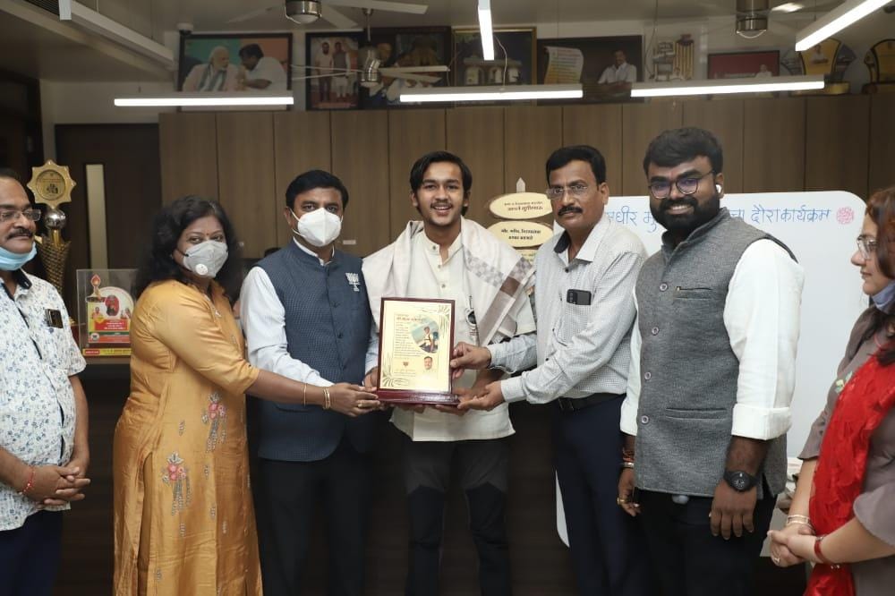 यावेळी भाजपा जिल्हाध्यक्ष(श)डॉ मंगेश गुलवाडे,महापौर राखी कंचर्लावार,कोषाध्यक्ष प्रकाश धारणे,भाजपा नेते रवी आसवानी,देवानंद वाढई,मनोज सिंघवी,सूरज पेदुलवार, भारती दुधानी,संदीप देशपांडे यांची उपस्थिती होती.याप्रसंगी रोहन अग्रवाल यांचा महापौर कंचर्लावार व जिल्हाध्यक्ष डॉ गुलवाडे यांचे हस्ते स्मृती चिन्ह,शाल,श्रीफळ देऊन सत्कार करण्यात आला.रोहनने या वेळी,माजी अर्थमंत्री आ सुधीरभाऊ मुनगंटीवार यांच्या सिंहावलोकन विकास पुस्तिकेचे अवलोकन केले.