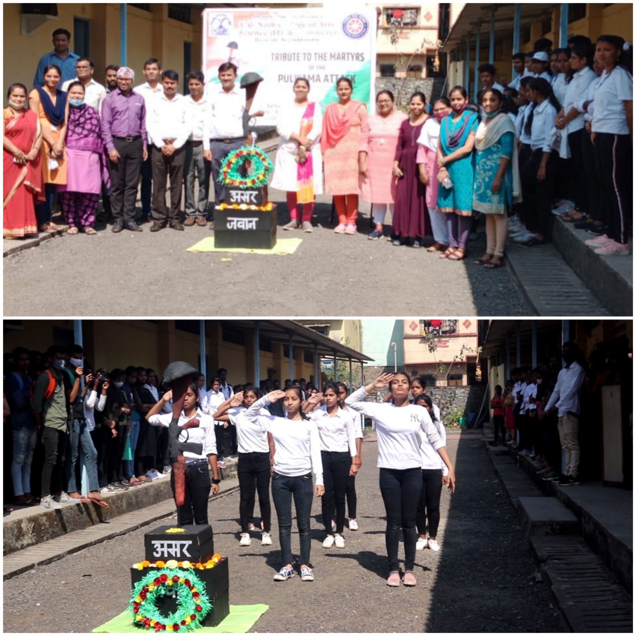 सदर आदरांजलीच्या कार्यक्रम प्रसंगी महाविद्यालयाचे राष्ट्रीय स्वयंससेवकांनी अमर जवान स्मारकाची प्रतिकृती तयार करून सर्वांनी त्यास आदरांजली वाहिली व पथनाट्य सादर करून शहीद जवानांना श्रद्धांजली वाहून विद्यार्थ्यांमधे देशभक्तीची भावना जागृत केली व मुलांमधे सैन्य भरती बद्दल जनजागृती केली . ह्या प्रसंगी महाविद्यालयाचे प्राचार्य श्री प्रताप महाडिक सर ह्यांनी शहिदांना श्रद्धांजली वाहून आपले विचार मांडले व सर्व विद्यार्थ्यांना भेदभाव त्यागून एकीने राष्ट्राचे हित जोपासण्यासाठी व भारत देशाचे नाव उज्वल करण्यासाठी आव्हान केले.