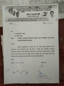 चिमूर : -रमेश खेरे राष्ट्रवादी काँग्रेस पार्टी चे सेवादल तालुका अध्यक्ष यांनी तत्कालीन नगर परिषद च्या नगराध्यक्ष शिल्पाताई राचलवार यांच्या कार्यकाळात झालेला चुरी घोटाळा प्रकरणी चौकशी करण्याबाबत चे उप विभागीय अधिकारी यांना दिले निवेदन,