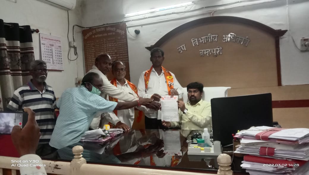 या योजनेसाठी शासनाकडून दोन वर्षापासून अनुदान उपलब्ध होत नसल्याने अर्ज केलेले लाभार्थी लाभापासून वंचित आहेत. त्यामुळे सदर योजनेसाठी शासनाकडून अनुदान उपलब्ध करून देण्यात यावे व नागरिकांच्या कल्याणाकरीता असलेल्या योजनेची प्रभावी अंमलबजावणी करण्यात यावी या मागणीसाठी शिवसेनेचे उपजिल्हाप्रमुख प्रा.अमृत नखाते चिमूर विधानसभा क्षेत्र यांच्या नेतृत्त्वात मुख्यमंत्री उद्धवजी ठाकरे, महिला व बालविकास मंत्री यशोमती ठाकूर, जिल्हाधिकारी चंद्रपूर, यांना संदिप भस्के उपविभागीय अधिकारी ब्रम्हपुरी यांच्या मार्फत निवेदन प्रेषित करण्यात आले. यावेळी शिवसेना उपतालुका प्रमुख केवळराम पारधी, उपतालुका प्रमुख डॉ.रामेश्वर राखडे, गुलाब बागडे विभागप्रमुख, माजी शहरप्रमुख शामराव भानारकर, गणेश बागडे शाखाप्रमुख माहेर, प्रविण कुथे, ठेंगरे यांच्यासह अनेक शिवसैनिक मोठ्या संख्येने उपस्थित होते._