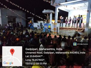 चंद्रपूर दि. 14 मार्च : शासनाच्या द्विवर्षपुर्तीनिमित्त माहिती व जनसंपर्क महासंचालनालय अंतर्गत जिल्हा माहिती कार्यालय, चंद्रपूरद्वारे शासनाच्या कल्याणकारी योजनांचा जागर करण्यात येत आहे. यासाठी जिल्ह्यातील सुभेदार रामजी बहुउद्देशीय संस्था, लोकजागृती नाट्यकला, शैक्षणिक, सामाजिक संस्था आणि जनजागृती कला व क्रीडा मंडळ या तीन कलापथक संस्थांद्वारे तीन कलापथकाद्वारे गावागावात जनजागृती करण्यात येत आहे. विशेष म्हणजे बोलीभाषेतील संवाद, पोवाडे, नकला, अभिनय आदींच्या माध्यमातून गावक-यांना शासकीय योजनांची माहिती मिळत असल्याने कलापथकांच्या सादरीकरणाला गावक-यांचा उत्स्फुर्त प्रतिसाद मिळत आहे.