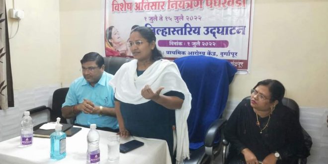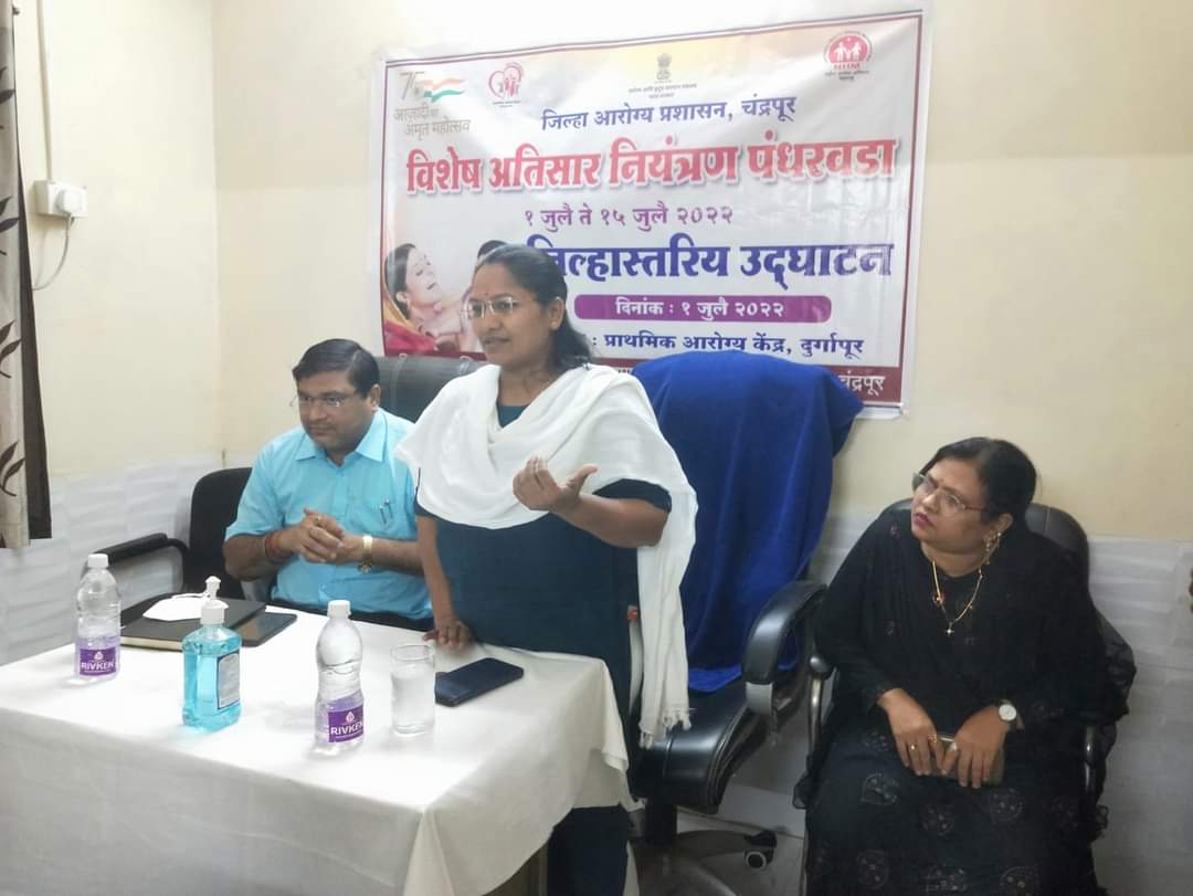 नियंत्रण पंधरवाडा कार्यक्रमाची जनजागृती करून कार्यक्रम यशस्वी करण्याचे आवाहन प्रभारी मुख्य कार्यकारी अधिकारी वर्षा गौरकार यांनी यावेळी केले. जिल्हा आरोग्य अधिकारी डॉ. राजकुमार गहलोत यांनी कार्यक्रमाच्या प्रास्ताविकेत विशेष अतिसार नियंत्रण पंधरवडा कार्यक्रमाचे महत्त्व याबाबत सविस्तर मार्गदर्शन केले. कार्यक्रमाचे संचालन मुरलीधर नन्नावरे तर आभार डॉ.आशिष वाकडे यांनी मानले. कार्यक्रमाला प्राथमिक आरोग्य केंद्र, दुर्गापुर येथील कर्मचारी उपस्थित होते.
