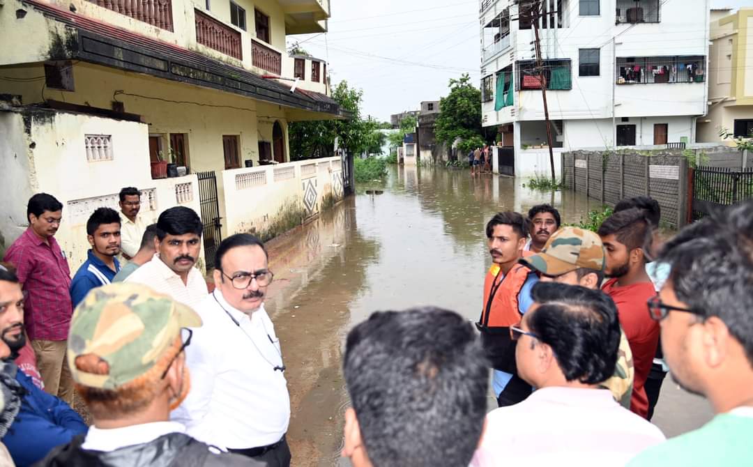 चंद्रपूर, दि. 14 जुलै : संपूर्ण जिल्ह्यात गत सहा-सात दिवसांपासून पावसाची संततधार सुरू असल्यामुळे पूर परिस्थिती निर्माण झाली आहे. त्यातच चंद्रपूर येथील इरई धरणाचे सर्व सातही दरवाजे उघडल्याने शहरातील काही भागात पाणी जमा झाले आहे. या भागाची पाहणी करण्याकरिता जिल्हाधिकारी अजय गुल्हाने यांनी काही भागाला प्रत्यक्ष भेट देवून पूरग्रस्तांशी संवाद साधला.