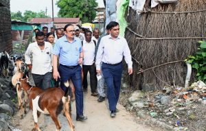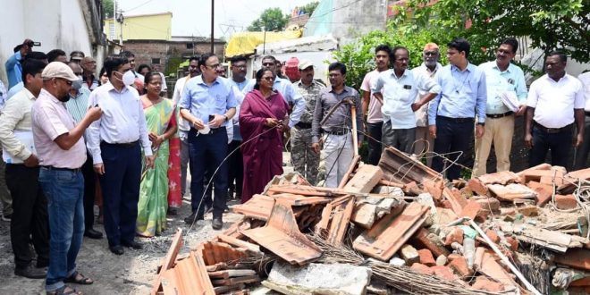 चंद्रपूर, दि. 3 ऑगस्ट : गत 15 दिवसांपूर्वी जिल्ह्यात झालेल्या अतिवृष्टीमुळे अनेक तालुक्यांना पुराचा जबर फटका बसला. या पूरग्रस्त गावांची पाहणी करण्याकरीता केंद्रीय पथक आज (बुधवारी) जिल्ह्यात दाखल झाले. या पथकाने भद्रावती तालुक्यातील चारगाव, देऊळवाडा, माजरी, पळसगाव, पाटाळा, मनगाव तर वरोरा तालुक्यातील करंजी, सोईत, दिधोरा या नऊ गावांना भेटी देऊन नुकसानग्रस्त झालेली शेतजमीन, पडलेली घरे, प्राथमिक आरोग्य केंद्र, प्राथमिक शाळा आदींची पाहणी केली. तसेच नागरिकांशी संवाद साधून त्यांच्या समस्या जाणून घेतल्या