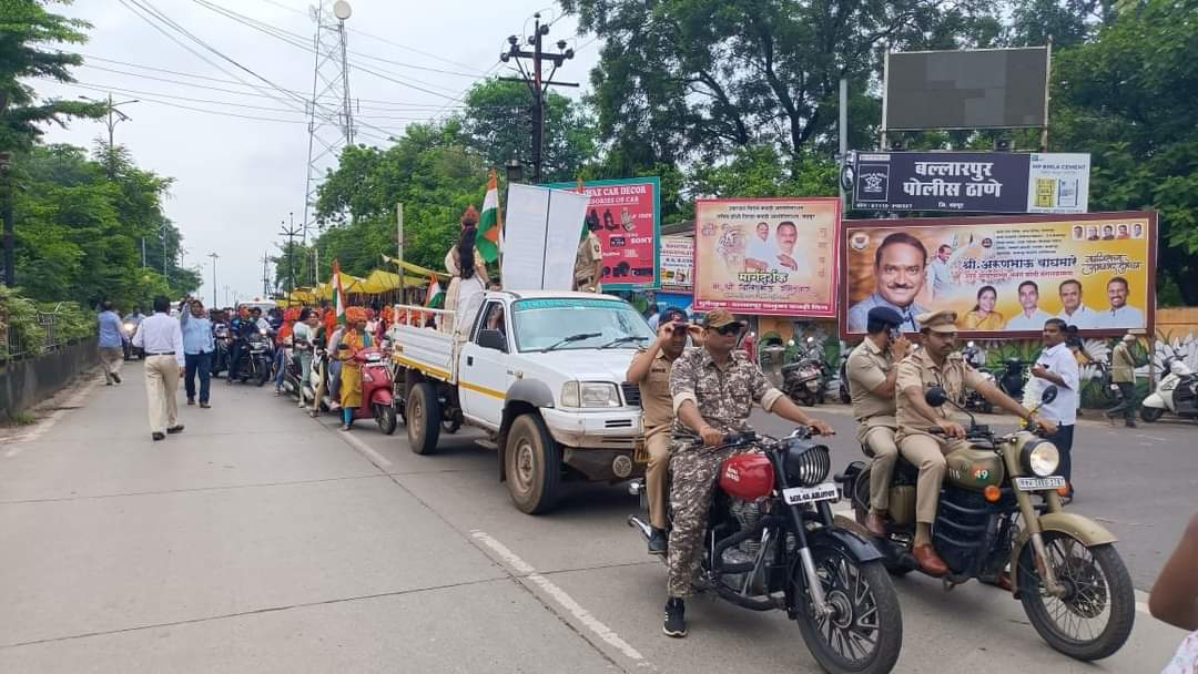 सदर रॅली ही जूना बस स्टॉप, नगर परिषद चौक, नवीन बस स्टॉप, बालाजी वार्ड, गणपती वार्ड, जोकु नाला या मार्गावरुन गेल्यानंतर बल्लारपूर किल्ला येथे रॅलीची सांगता करण्यात आली. रॅली मार्गावरील सर्व संत, महापुरुषांच्या पुतळ्यांना माल्यार्पण करून अभिवादन करण्यात आले. रॅलीमध्ये भारतमाताची वेश परिधान केलेल्या महिला आकर्षण ठरल्या . रॅलीच्या माध्यमातून नागरिकांना घरोघरी झेंडा लावण्याबाबत जनजागृती करण्यात आली.