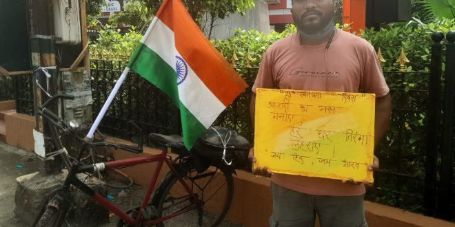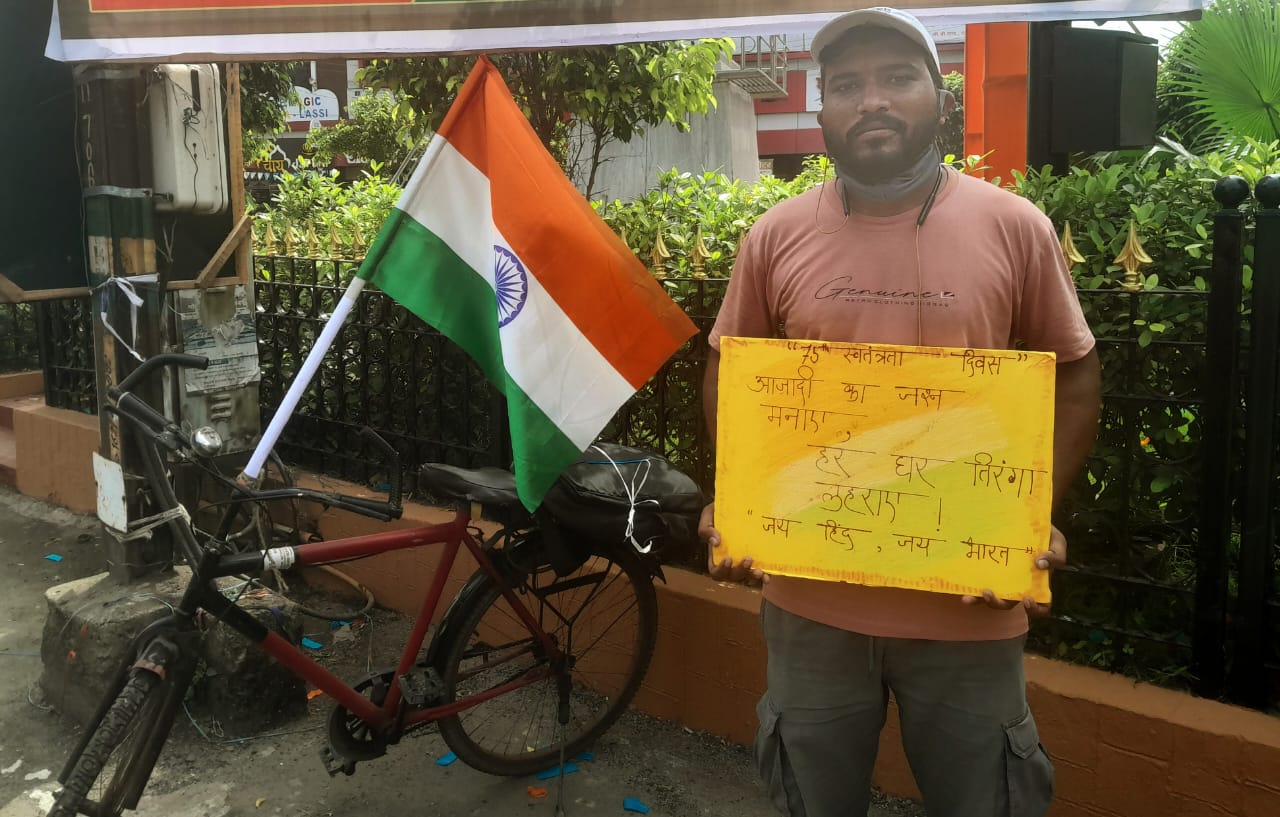 वरोरा:-देशाचे प्रधानमंत्री नरेंद्र मोदी यांच्या हर घर तिरंगा उपक्रम मध्ये तिरंगा घरोघरी लावावा असा नारा लावत वरोरा शहरातील दिपक प्रमोदराव दौलतकर यांनी सायकल द्वारे अवघ्या 3 तासात वरोरा ते जठपुरा गेट चंद्रपूर 50 किलोमीटर अंतर पार केले,
