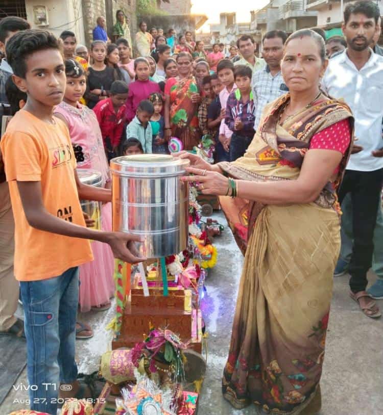 वर्धा:-सावली सा. येथे दरवर्षी प्रमाणे याही वर्षी तान्हा पोळ्याचे आयोजन मोठ्या थाटात करण्यात आले, यावर्षी 141 नंदी पोळ्यामध्ये सहभागी झाले.लहान मुलांचा उत्साह वाढावा त्यासाठी पाच बक्षीस ठेवण्यात आले प्रथम बक्षीस निखिल वासुदेवराव सिद यांचा कडून ,द्वितीय बक्षीस नारायणराव पाहुणे यांचा कडून, तृतीय बक्षीस भूषण झाडे व प्रफुल चांभारे यांचा कडून, चतुर्थ बक्षीस सरला अशोकराव गुळघाणे यांचा कडून, पाचवे बक्षीस बाल गणेश मंडळ यांचे कडून देण्यात आले व सर्व मुलाना झाडे लावण्याची कुंडी भेट देण्यात आली या कार्यक्रमाला प्रमुख उपस्थिती माजी जिल्हा परिषद सदस्य देवरावजी पाटील, माजी सरपंच विनोदभाऊ तिमांडे, माजी उपसरपंच वसंतराव उघडे तसेच गावातील प्रतिष्ठित नागरिक श्री विलासराव गुळघाणे, पद्माकरराव झाडे, सुनील गुळघाणे, हनुमानजी वाघमारे, जगनराव चौधरी, नामदेवराव बोरकर, मुन्नाभाऊ गुळघाणे, वासुदेवराव सिद, उत्तमराव बुरीले, संजय गुळघाणे, व नागरिक उपस्थित होते तसेच कार्यक्रमाचे आयोजन सुधीर वाघमारे, भुषण सिद, कुणाल सिद, सचिन बोरकर, भुषण झाडे, सुरज गुळघाणे, प्रफुल बुरले, मयुर वाघमारे, पंकज वाघमारे, प्रफुल चांभारे,हनुमान गुळघाणे, अतुल चांभारे, राहुल कडु, किशोर बोरकर, मंगेश चावके,रोशन गुळघाणे व बाल गणेश मंडळाचे सदस्य उपस्थित होते