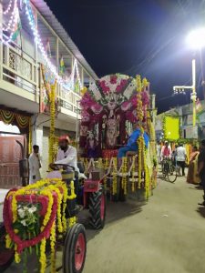 श्री रामदेवबाबा मंदिर छत्रपती शिवाजी महाराज डोंगरवार चौक मुख्य मार्गाने नेहरू चौक ते यावले चौक मार्गक्रमण करीत दुकान लाईन श्री रामदेवबाबा मंदिरात आरती ने कलश शोभा यात्रा संपन्न झाली.