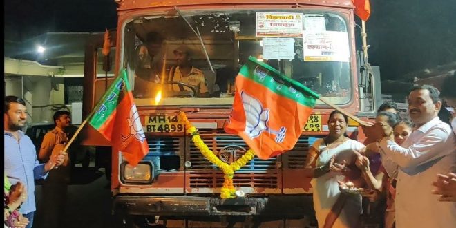 कल्याण – कल्याण पूर्व विधानसभा मतदार संघाचे भाजपा आमदार श्री. गणपत गायकवाड तसेच भाजपा पुर्व मंडळ अध्यक्ष श्री. संजय बाबुराव मोरे यांच्या संयुक्त विद्यमाने सोमवारी रात्री प्रभाग ड कार्यालयाच्या प्रांगणातून कोकणासाठी १२ विशेष बसेस सोडण्यात आल्या. ५० टक्के प्रवासी भाडे घेऊन कोंकणातील आपल्या गावी गौरी – गणपती सण साजरा करण्यासाठी चाकरमान्यांना या बसेस मधून सन्मानपूर्वक रवाना करण्यात आले.
