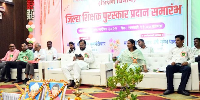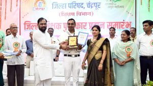 चंद्रपूर, दि. 5 सप्टेंबर : शिक्षक दिनाचे औचित्य साधून जिल्हा परिषदेतर्फे 15 प्राथमिक तर एक माध्यमिक अशा एकूण 16 शिक्षकांना जिल्हा शिक्षक पुरस्काराचे वाटप करण्यात आले. जिल्हा परिषदेच्या मा.सा. कन्नमवार सभागृहात आयोजित या कार्यक्रमाचे उद्घाटन आमदार किशोर जोरगेवार यांनी केले.