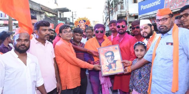 वरोरा:-छत्रपती शिवाजी महाराज व हिंदुहृदयसम्राट बाळासाहेब ठाकरे यांच्या प्रतिमेला वंदन करुन व पुष्पहार घालून शिवसेना जिल्हा प्रमुख चंद्रपूर मुकेशभाऊ जिवतोडे यांच्या नेतृत्वात वरोरा शहरातील प्रत्येक सार्वजनिक गणपती मंडळ, महाराष्ट्र शासन पोलीस वरोरा अधिकारी,महाराष्ट्र विदयुत वितरण वरोरा अधिकारी,तहसील कार्यलय वरोरा अधिकारी, ex आर्मी वरोरा या सर्वांना, 80%समाजकारण व 20%राजकारण अशे विचार प्रेरित ठेऊन,हिंदुहृदयसम्राट बाळासाहेब ठाकरे यांची प्रतिमा भेट देण्यात आली,तसेच शाल श्रीफळ देऊन सत्कार करण्यात आला.