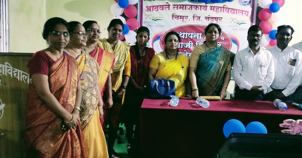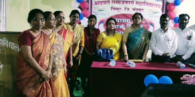 चिमूर:-चिमूर दि. १२/०९/२०२२ ला आठवले समाजकार्य महाविद्यालय, चिमूर येथे आज दिनांक १२/०९/२०२२ रोजी महाविद्यालयाचा ३० वा वर्धापन दिन व माजी विद्यार्थी स्नेहमिलन सोहळा मोठया उत्साहात साजरा करण्यात आला. याप्रसंगी सांस्कृतिक व संगीताच्या कार्यक्रमाचे आयोजन करण्यात आले. यात आजी-माजी विद्यार्थी मोठ्या संख्येने उपस्थित होते.