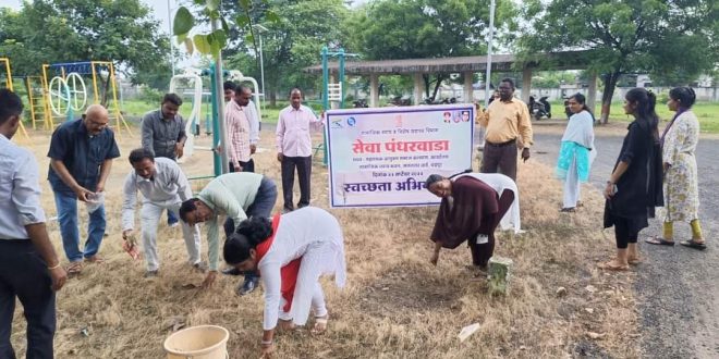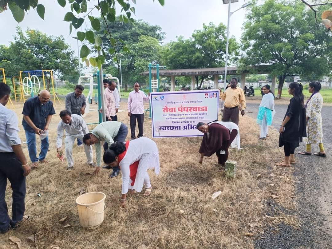 चंद्रपूर, दि. 27 सप्टेंबर : राष्ट्रनेता ते राष्ट्रपिता सेवा पंधरवडा अंतर्गत सामाजिक न्याय व विशेष सहाय्य विभागाचे आयुक्त प्रशांत नारनवरे यांच्या मार्गदर्शनाखाली चंद्रपूर येथील डॉ. बाबासाहेब आंबेडकर सामाजिक न्याय भवनात स्वच्छता अभियान राबविण्यात आले. यावेळी सहाय्यक आयुक्त समाज कल्याण अमोल यावलीकर यांच्यासह कार्यालयातील अधिकारी व कर्मचारी उपस्थित होते.