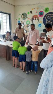 चिमुकल्या विद्यार्थ्यांना बिस्कीट खाऊ देऊन पोलीस स्टेशनचे वतीने अलाम यांनी विद्यार्थ्यांचे कौतुक केले.