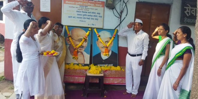 चंद्रपूर:- 2 ऑक्टोंबर ला महात्मा गांधीजी व लालबहादूर शास्त्रीजी यांची जयंती निमित्त सेवा दल मुलींचे वस्तीगृह चोखामेळा मुलींचे वस्तीगृह स्नेहा मुलींचे वस्तीगृह यांच्यातर्फे गांधीजी व शास्त्रीजी यांना अभिवादन करण्यात आले अमृतकर मॅडम ने आपल्या उद्बोधनात गांधीजीने गोहत्या बंदी, नशाबंदी, अस्पृश्यता निवारण करण्याचा प्रण केला होता ते प्रत्यक्षात उतरविणे गरजेचे आहे.