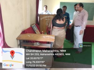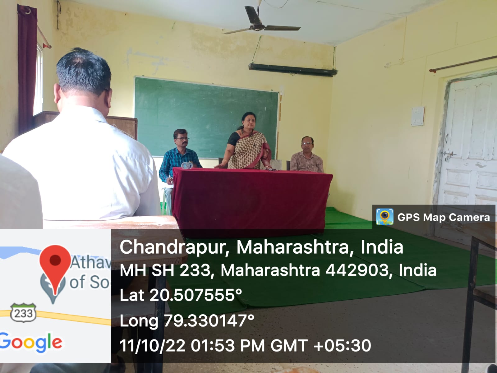 चिमूर:-आठवले समाजकार्य महाविद्यालय, चिमूर येथे आज दिनांक ११/१०/२०२२ रोजी वंदनीय श्री राष्ट्रसंत तुकडोजी महाराज यांच्या ५४ व्या पुण्यतिथी निमित्ताने कार्यक्रमाचे आयोजन करण्यात आले. सुरुवातीला वं. राष्ट्रसंतांच्या प्रतिमेला माल्यार्पण करून अभिवादन करण्यात आले. अंधश्रद्धा निर्मूलन व जातिभेदाच्या निर्मूलनासाठी त्यांनी भजनांचा आणि कीर्तनाचा प्रभावीपणे वापर केला. तसेच वंदनीय श्री राष्ट्रसंतांनी आपल्या साहित्याच्या माध्यमातूनही सर्वधर्मसमभाव, बंधुभाव अशी मूल्ये समाजात रुजविल्याचे सांगत त्यांच्या हिंदी व मराठी भाषेतील अनेक रचनांचा उल्लेख करत प्रा. डॉ. सुरेश मिलमिले यांनी वं. राष्ट्रसंतांच्या जीवन कार्यावर मार्मिक असे भाष्य केले.