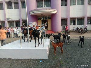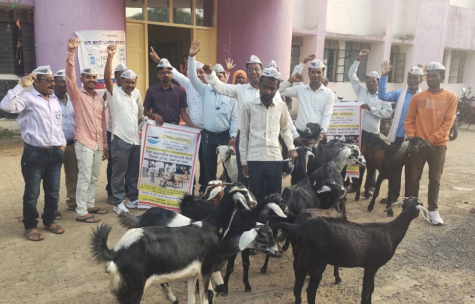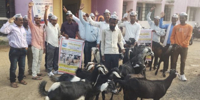 तहसील कार्यालयात बकऱ्या चारून आप ने केला सरकारचा निषेध