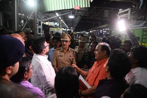 घटनेच्या दिवशी (रविवारी) रेल्वे स्थानकाला भेट दिल्यानंतर सलग दुस-या दिवशीसुध्दा (सोमवारी) पालकमंत्र्यांनी बल्लारपूर रेल्वे स्टेशनला भेट देवून रेल्वे प्रशासनाचा आढावा घेतला. याप्रसंगी जिल्हाधिकारी विनय गौडा, जिल्हा पोलिस अधीक्षक रविंद्रसिंह परदेशी, रेल्वे प्रशासनच्या विभागीय रेल्वे व्यवस्थापक ऋचा खरे, लोहमार्ग पोलिस अधिक्षक वैशाली शिंदे, रेल्वेचे वरिष्ठ विभागीय सुरक्षा आयुक्त आशुतोष पांडे वरिष्ठ विभागीय व्यावसायिक व्यवस्थापक कृष्णा पाटील, बल्लारपूरच्या उपविभागीय अधिकारी डॉ. दिप्ती सुर्यवंशी, बल्लारपूर स्टेशन प्रबंधक ए.यु.खान, तसेच नॅशनल रेल्वे युझर्स कौन्सिलचे सदस्य अजय दुबे, चंदनसिंह चंदेल, डॉ. मंगेश गुलवाडे, माजी नगराध्यक्ष हरीश शर्मा, ब्रिजभूषण पाझारे, राहुल पावडे, प्रज्वलन कडू, सुरज पेदूलवार, नीलेश खरवडे आदी उपस्थित होते.