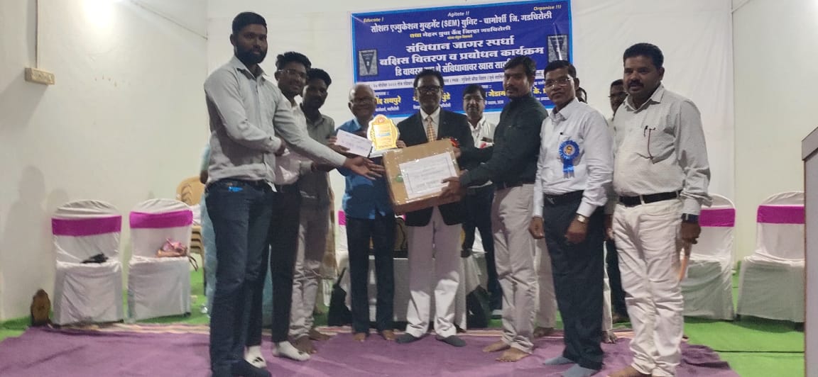 चिमूर:-सोशल एज्युकेशन मूव्हमेंट, गडचिरोली द्वारे राज्यस्तरीय संविधान जागर स्पर्धा आयोजित करण्यात आली होती.यात चिमूर तालुक्यात विविध उपक्रमांनी संविधान जागृती केल्याबद्दल नेचर फाउंडेशन, नागपूर ला प्रथम क्रमांक प्राप्त झाला आहे.