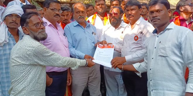 विजय कुमार गावित यांना तहसीलदार वरोरा मार्फत दिलेल्या निवेदनातून मनसेचे जिल्हा उपाध्यक्ष राजू कुकडे यांनी गावकऱ्यांच्या वतीने दिला आहे. यावेळी मनसे जिल्हा सचिव विनोद सोनटक्के, तालुका उपाध्यक्ष प्रशांत बदकी, विभाग अध्यक्ष राजेंद्र धाबेकर, रंगनाथ पवार,भास्कार कुमारे, दिवाकर कुमारे,निलेश कुमारे, रमेश मस्राम, अक्षय मडावी, तुलसीदास कन्नाके, प्रकाश मर्हसकोल्हे गिरिधर कोयचाडे रामू कोयचाडे, सारिका कुमारे, वैशाली कुमरे, मंजूषा मस्राम, माया ढवळे, रसिका धुर्वे, शामकला शेडमाके, मंजुळा मस्राम इत्यादींची उपस्थिती होती या निवेदनाच्या प्रती पालकमंत्री सुधीरभाऊ मुनगंटीवार. जिल्हाधिकारी चंद्रपूर, एकात्मिक आदिवासी प्रकल्प अधिकारी चिमूर यांना देण्यात आल्या.