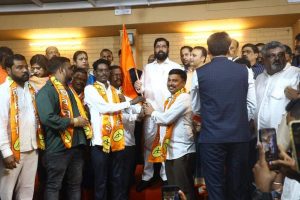 मुंबई: मुंबईतील कांदिवली येथील शिवसेना, मनसे तसेच राष्ट्रवादी काँग्रेस पक्षाच्या अनेक पदाधिकाऱ्यांनी तसेच शिवसेनेच्या भारतीय चित्रपट कामगार सेनेचे कार्याध्यक्ष सुशांत शेलार यांनी मुख्यमंत्री एकनाथ शिंदे यांची भेट घेऊन शनिवारी बाळासाहेबांची शिवसेना पक्षात जाहीर प्रवेश केला.
