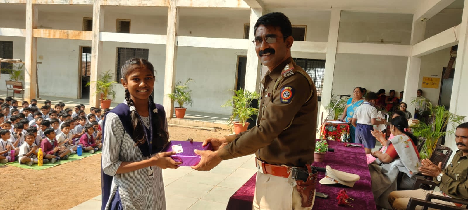 चिमूर:- चिमूर येथील पुरुषोत्तमदास बागला कॉन्व्हेन्ट येथे महाराष्ट्र पोलीस वर्धापन दिनानिमित्त “महाराष्ट्र पोलीस. निबंध स्पर्धा व चित्रकला स्पर्धेचे बक्षीस वितरण १४ जानेवारी रोजी संपन झाले, यावेळी पोलीस निरीक्षक मनोज गभने यांनी सायबर फ्राड व वाहतूक नियमांचे पालन यावर मार्गदर्शन केले, चिमूर पोलीस स्टेशन अंतर्गत २ जानेवारी २०२३ ते ८ जानेवारी २०२३ पर्यंत महाराष्ट्र पोलीस वर्धापन दिनानिमित्त विविध ठिकाणी जनजागृती केली होती, व दिनांक ४ जानेवारी २०२३ रोजी पुरुषोत्तमदास बांगला कॉन्व्हेन्ट चिमूर येथे जनजागृती कार्यक्रमाचे आयोजन करून पोलीस निरीक्षक मनोज गभने यांनी सायबर फ्राड व वाहतूक नियमांचे पालन याबाबत मार्गदर्शन केले.