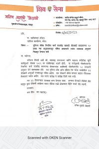 शेतकऱ्यांच्या हितासाठी युवासेनेचे तहसीलदार वरोरा यांना निवेदन