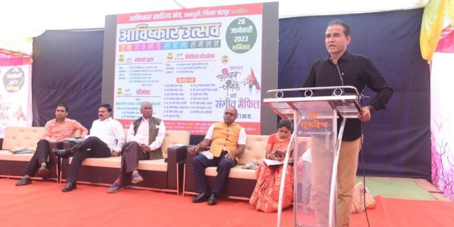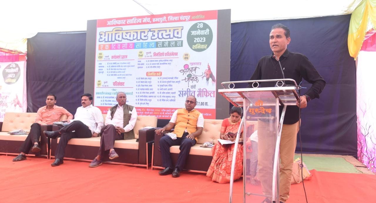 चंद्रपूर:-आविष्कार साहित्य मंचाने आयोजित केलेला आविष्कार उत्सव 2023 हा सोहळा अतिशय उत्साहात व दिमाखदारपणे पार पडला. या एक दिवसीय साहित्य संमेलनात उद्घाटन, परिसंवाद, कविसंमेलन व संगीत मैफिल असे एकूण चार सत्र ठेवण्यात आले होते. पहिल्या सत्रात कार्यक्रमाचे उद्घाटन ब्रम्हपुरीचे जेष्ठ साहित्यिक प्राचार्य श्याम झाडे यांनी केले. नियोजित अध्यक्ष प्राचार्य एन.एस.कोकोडे होते. संपूर्ण साहित्य संमेलनाचे स्वागताध्यक्ष अशोकजी रामटेके प्रामुख्याने पूर्ण वेळ उपस्थित होते. साहीत्य व समाजाची उदासीनता लक्षात घेता साहित्यिकांवर किंबहुना आयोजकांवर समाजजागृती करण्याची जबाबदारी येऊन ठेपली आहे, असे मत त्यांनी प्रतिपादित केले.