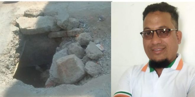 खाली नाली वरचा स्लाप अर्धा आहे बाकी खड्डा पडून आहे. कितीतरी वेळा सूचना देऊन याकडे नगर परिषदेचे कोणतेही लक्ष नाही. फक्त जनतेला त्रास देणे काही कामे घेऊन गेले की पहिले आपल्या घराचा ,पिण्याचा कर भरणा करा बाकी नंतर बघु असे कधी पर्यंत चालणार या करीता प्रशासनाने चिमूर नगर परिषदकडे लक्ष द्यावे अन्यथा नगर परिषद समोर आंदोलन करण्यात येईल असा इशारा काँग्रेसचे मिडिया प्रमुख पप्पु शेख यांनी दिले आहे.