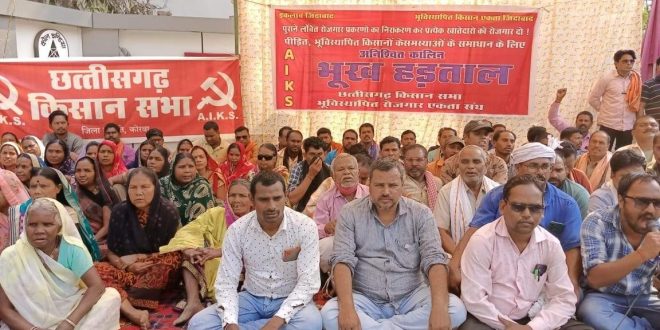 कोरबा:- छत्तीसगढ़ किसान सभा और भू विस्थापित रोजगार एकता संघ द्वारा एसईसीएल के कुसमुंडा मुख्यालय के सामने पिछले 488 दिनों से दिया जा रहा धरणा आज अनिश्चित कालीन भूख हड़ताल में बदल गया है। आज किसान सभा के जिला सचिव प्रशांत झा, भू विस्थापित रोजगार एकता संघ के अध्यक्ष रेशम यादव और सचिव दामोदर श्याम भूख हड़ताल में बैठे।उनके समर्थन में गेवरा, दीपका और कुसमुंडा के सैकड़ों भू विस्थापित परिवारों ने भी धरना दिया।