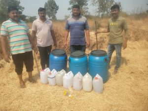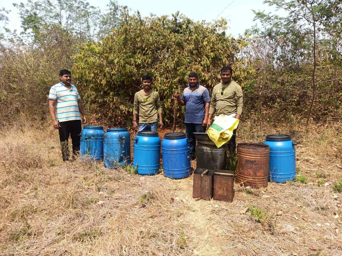 तसेच चिमूर पोलीसांनी दुसऱ्या ठिकाणी कार्यवाही करीत पाच प्लास्टिक ड्रम 50 लि प्रमाणे 250 किलो मोहा सोडवा किंमत प्रति किलो 150 रू प्रमाणे एकूण 37500/रूपये, 5 प्लास्टिक ड्रम किंमत 2500/रूपये, 2 लोखंडी ड्रम किंमत 1000/ रुपये, 2 जर्मनी वाटे किंमत 1000/रुपये, दारू भट्टी साठी लागणारे इतर किरकोळ साहित्य नेवारपट्टी ,चाटू, लोखंडी पिपे असा एकूण 42000/ रुपये किंमतीचा मुद्देमाल हस्तगत केला.या कार्यवाहीतील आरोपी जितेंद्र शंभरकर राहणार गदगाव येथील आहे.