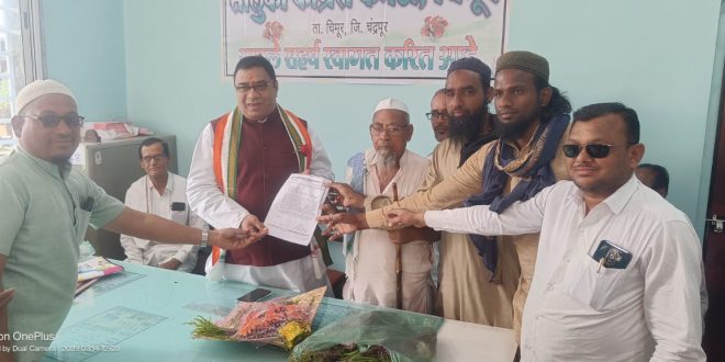 चिमूर तालुका काँग्रेस अल्पसंख्यक विभाग अध्यक्षपदी सामाजिक कार्यकर्ते आरिफभाई शेख यांची नियुक्ती