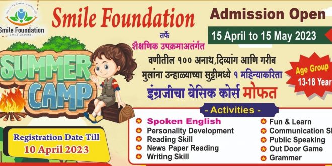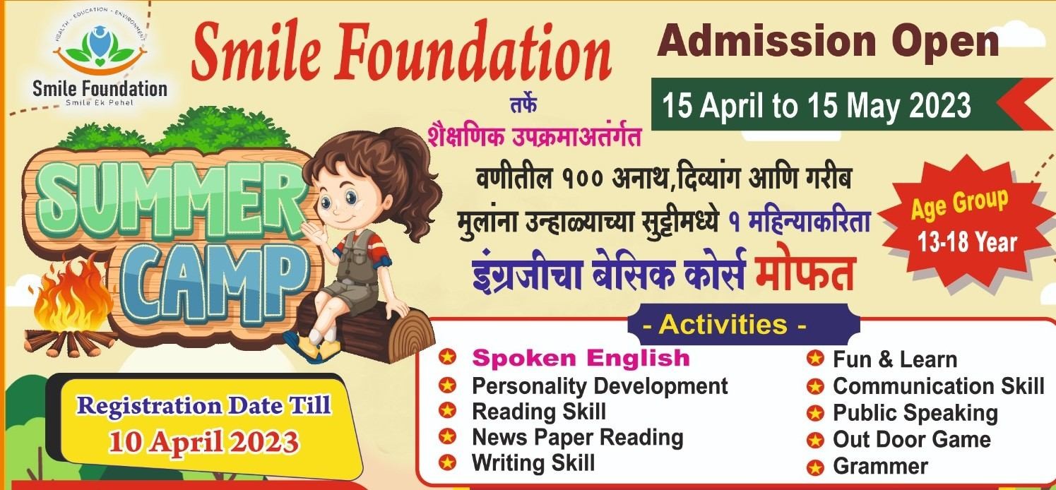 स्माईल फाउंडेशन ही परिसरातील एक सुपरिचित संस्था असून याद्वारे विविध सामाजिक, शैक्षणिक उपक्रम राबवले जाते. गेल्या दोन वर्षांपासून उन्हाळी शिबिर या संस्थेद्वारा घेण्यात येते. या उपक्रमात मोठ्या संख्येने सहभागी व्हावे असे आवाहन स्माईल फाउंडेशनतर्फे करण्यात आले आहे.