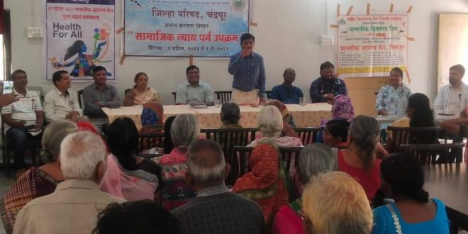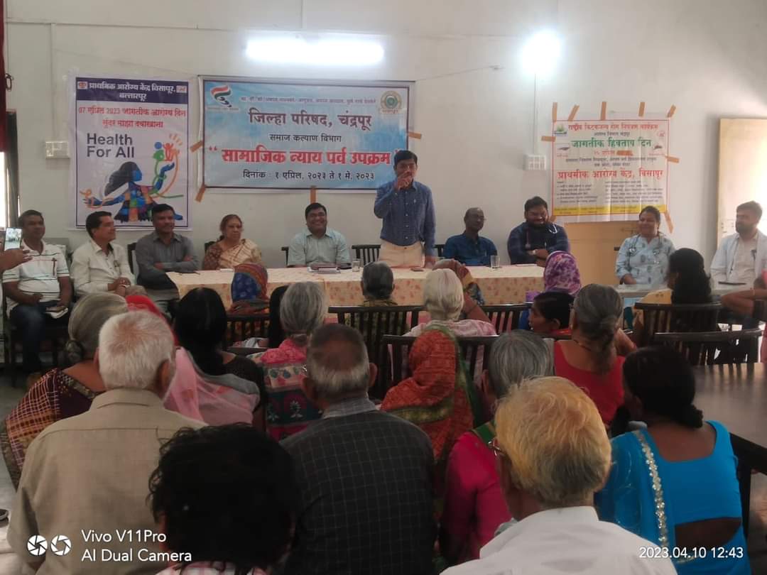 चंद्रपूर, दि. 13: जागतिक दिव्यांग दिन व सामाजिक न्याय पर्व उपक्रमानिमित्त जिल्ह्यात विविध उपक्रम राबविण्यात येत आहे. त्याअंतर्गत मातोश्री वृद्धाश्रम, भिवकुंड येथे वृद्ध व्यक्तींची आरोग्य तपासणी शिबिराचे आयोजन करण्यात आले होते.