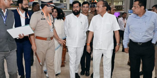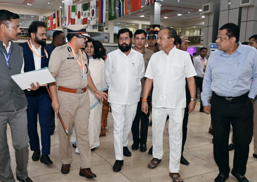मुख्यमंत्री एकनाथ शिंदे यांचे विमानतळावर आगमन झाल्यानंतर खासदार कृपाल तुमाने, आमदार अॅड आशिष जायस्वाल, विभागीय