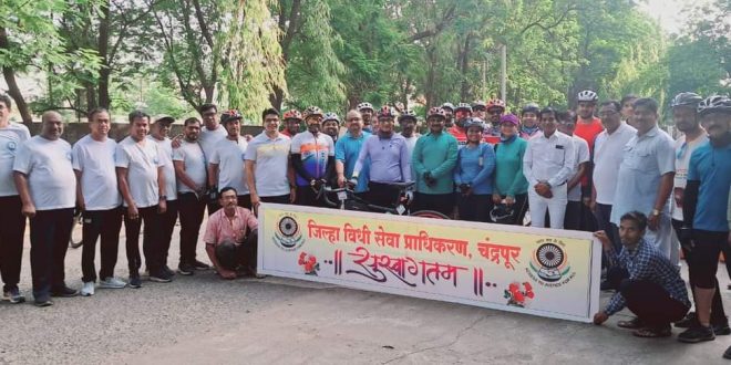 यावेळी  पी. जी. भोसले यांनी जागतीक सायकल दिनानिमित्त सर्वाना सुभेच्छा दिल्या व सायकल रॅलीला हिरवा झेंडा दाखवून मार्गस्थ केले. सदर रॅली जिल्हा व सत्र न्यायालय, चंद्रपूर येथुन माहात्मा गांधी चौक मार्गे पुन्हा न्यायालयात येवुन रॅलीचा समारोप झाला. सायकल रॅली यशस्वी करण्यासाठी जिल्हा विधी सेवा प्राधिकरणाचे सर्व कर्मचारी, पोलीस कर्मचारी व अॅड. महेंद्र असरेट यांनी सहकार्य केल्याची माहिती सुमित जोशी यांनी दिली.