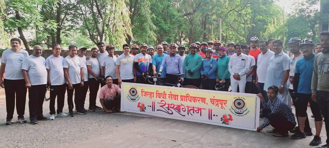 चंद्रपूर:- दि.3, आजच्या जागतिक सायकल दिन व पर्यावरण दिनानिमित्त प्रदुषण मुक्तीचा संदेश देण्यासाठी प्रभारी प्रमुख जिल्हा व सत्र न्यायाधीश पी. जी. भोसले यांच्या मार्गदर्शनाखाली जिल्हा व सत्र न्यायालय, चंद्रपूर येथे सायकल रॅलीचे आयोजन जिल्हा विधी सेवा प्राधिकरणमार्फत करण्यात आले होते.