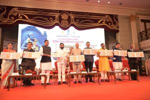 मुंबई / चंद्रपूर, दि. 7 : छत्रपती शिवाजी महाराजांचे सामर्थ्य प्रचंड होते. आपण स्वत:ला भाग्यशाली समजतो की, आपण सर्व छत्रपतींच्या महाराष्ट्राचे निवासी आहोत, असे गौरवोदगार महाराष्ट्राचे राज्यपाल रमेश बैस यांनी काढले. छत्रपती शिवाजी महाराजांच्या 350 व्या शिवराज्याभिषेक दिनानिमित्त सांस्कृतिक विभागातर्फे विशेष टपाल तिकिटाचे प्रकाशन सोहळ्याप्रसंगी ते बोलत होते. राजभवन मुंबई येथे आयोजित या कार्यक्रमाची सुरुवात राष्ट्रगीत आणि राज्यगिताने झाली. याप्रसंगी मुख्यमंत्री एकनाथ शिंदे, उपमुख्यमंत्री देवेंद्र फडणवीस, विधानसभा अध्यक्ष राहुल नार्वेकर, महाराष्ट्राचे सांस्कृतिक कार्यमंत्री सुधीर मुनगंटीवार, मंत्री मंगलप्रभात लोढा, शालेय शिक्षणमंत्री दीपक केसरकर, मुंबईच्या पोस्ट मास्तर जनरल स्वाती पांडे, सांस्कृतिक विभागाचे प्रधान सचिव विकास खारगे, आदी उपस्थित होते. यावेळी विशेष टपाल तिकिटाचे अनावरण मान्यवरांच्या हस्ते करण्यात आले.