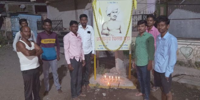 यावेळी अध्यक्षस्थानी मारोती डाहुले ग्रामपंचायत सदस्य, प्रमुख अतिथी शंकर पंधरे तालुकाध्यक्ष ट्रायबल फोरम राळेगाव, तालुका उपाध्यक्ष सुनील मेश्राम, शाखा अध्यक्ष अजय जुमनाके, शाखा महासचिव सुरज सलाम, देवेंद्र सलाम, सुधाकर मडावी, रोशन मेश्राम, रमेश सलाम, यांची होती. याप्रसंगी मान्यवरांनी बिरसा मुंडा यांच्या प्रतिमेला पुष्पहार अर्पण करून अभिवादन करण्यात आले. यावेळी राजेंद्र जुमनाके, समीर परचाके, सुशिल आत्राम, करण परचाके, प्रफुल कुळसंगे तथा सर्व समाजबांधवाची उपस्थिती होती.
