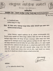 उपविभागीय अधिकारी यांना कांग्रेस पार्टीचे सरचिटणीस विलास मोहिणकर यांनी दिले निवेदन