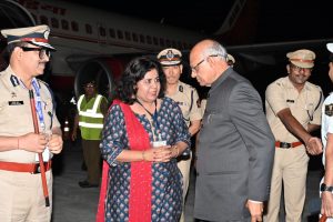 नागपूर दि.२३ : महाराष्ट्राचे राज्यपाल रमेश बैस यांचे नागपूर विमानतळावर शुक्रवारी रात्री साडेआठ वाजता आगमन झाले. अमरावती विद्यापीठाच्या उदयाच्या पदवीदान सोहळ्यासाठी ते आले आहेत. विभागीय आयुक्त विजयलक्ष्मी बिदरी, पोलीस आयुक्त अमितेश कुमार यांनी त्यांचे स्वागत केले.