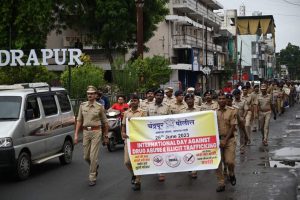 चंद्रपूर, दि. 27 : दरवर्षी 26 जुन हा दिवस जागतिक अंमली पदार्थ विरोधी दिन म्हणुन पाळला जातो. नशेच्या आहारी गेलेल्या लोकांचे जीवन वाचवणे, प्रत्येक व्यक्ती, मुले, मुली यांच्यामध्ये अंमली पदार्थाच्या दुष्परिणामाबाबत जागरुकता करणे, या उद्देशाने जिल्हा पोलिस दलातर्फे जनजागृतीपर प्रभातफेरी काढण्यात आली.