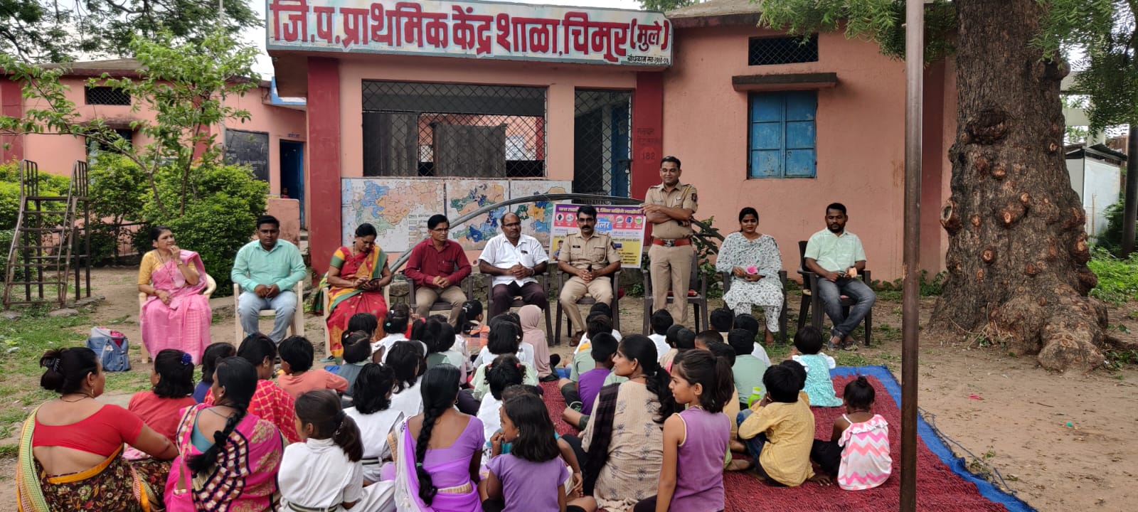 चिमूर:-चिमूर येथील जिल्हा परीषद केंद्रीय प्राथमिक शाळा, अभ्यंकर मैदान येथे ग्रिन डे निमित्त सकाळ वृत्त समूहाचे वतीने वृक्षारोपनाचे कार्यक्रम घेण्यात आले. या कार्यक्रमाचे अध्यक्ष केंद्र प्रमुख तुळशिराम महल्ले, प्रमुख अतिथी उपविभागीय पोलिस अधिकारी तथा उपअधिक्षक राकेश जाधव, नगर परिषद, चिमूर मुख्याधिकारी डॉ. सुप्रिया राठोड, पोलिस निरीक्षक मनोज गभने, प्रशासकिय अधिकारी नगर प्रदिप रणखांब,शाळा व्यवस्थापन समिती अध्यक्ष श्रीहरी सातपुते,मुख्याध्यापिका सरिता गाडगे,वर्षा निमजे, रविंद्र बावनकर इत्यादी मान्यवर मंचावर उपस्थित होते.