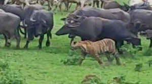 म्हशींच्या एकजुटीने वाघावर केली मात