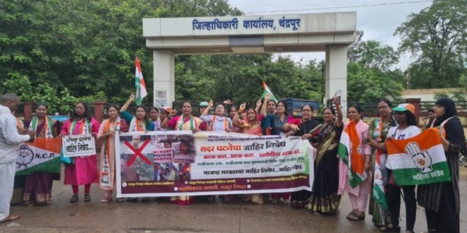 मणिपूरमध्ये मागील चार महिन्यापासून हिंसाचार धुमसत आहे. पण पंतप्रधान आतापर्यंत यावर काहीही बोलले नाही काल महिलांवर झालेल्या सामूहिक बलात्काराची घटना उघडकीस आल्यावर केवळ ८६ सेकंद पंतप्रधान यावर बोलले. मणिपूर मध्ये देखील भाजप चे सरकार आहे पण तिथे भाजप चे मुख्यमंत्री बिरेन सिंग हिंसाचार रोखण्यात असफल झाले आहे. ज्या देशात महिलांना देवी मानले जाते त्या देशात महिलांची अशी नग्न धिंड काढल्या जात असेल तर नैतिकतेच्या आधारावर मुख्यमंत्री बीरेन सिंग यांनी तात्काळ राजीनामा द्यावा तसेच पंतप्रधान नरेंद्र मोदी यांनी संसदेत या संबंधी निवेदन द्यावे अशी मागणी महाविकास आघाडीच्या संघटनेच्या महिला अध्यक्षांनी केली. महिला काँग्रेस च्या जिल्हाध्यक्ष नम्रता आचार्य-ठेमस्कर, चंद्रपूर राष्ट्रवादी काँग्रेस महिला आघाडीच्या जिल्हाध्यक्ष बेबीताई उईके, शिवसेना उद्धव बाळासाहेब ठाकरे च्या महिला जिल्हा संघटक उज्वला नलगे यांच्या नेतृवात हे आंदोलन करण्यात आले.