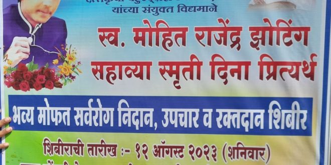 मोहित राजेंद्र झोटींग यांच्या स्मृतिदिनानिमित्त भव्य रोग निदान, उपचार व रक्तदान शिबीर